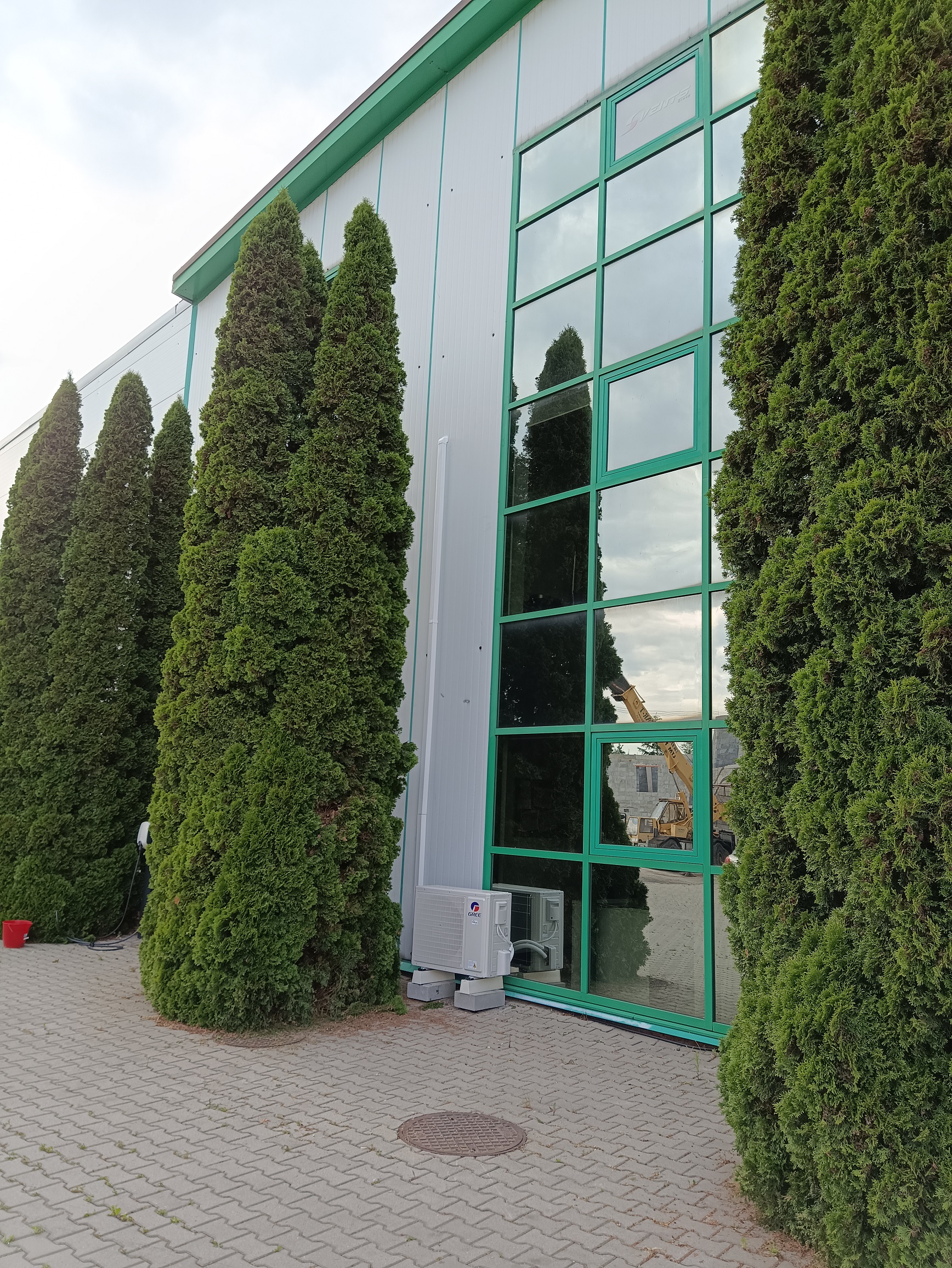 Klimatyzacja do magazynu w Żorach, montowana głównie jako źródło ciepła ale ma być też używana latem w celu obniżenia temperatury w miejscu pracy.